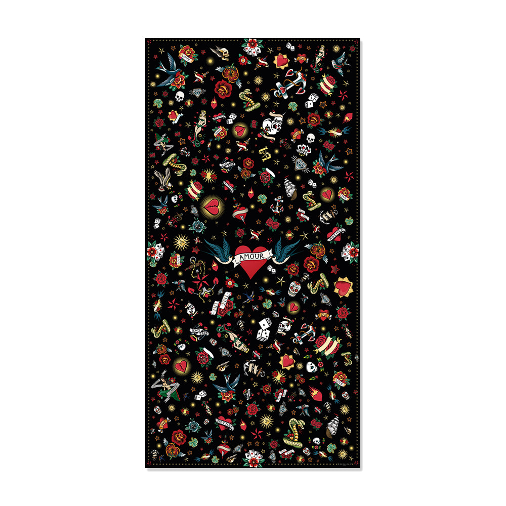 Whether you want to add a touch of originality to a modern space or complement an eclectic decor, this tattoo-look vinyl rug is the perfect accessory. Embrace creativity and boldness with this unique rug, and let every room in your home reflect your love for tattoo art and distinctive design.