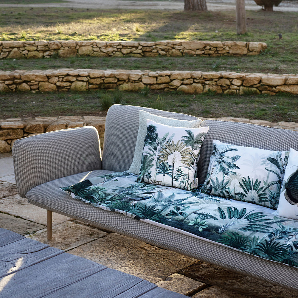 Velvet cover printed on both sides • finished with velvet piping • zipper • Cushion interior 100% polyester - non-woven cover